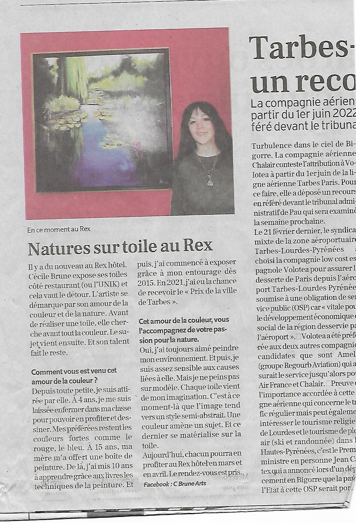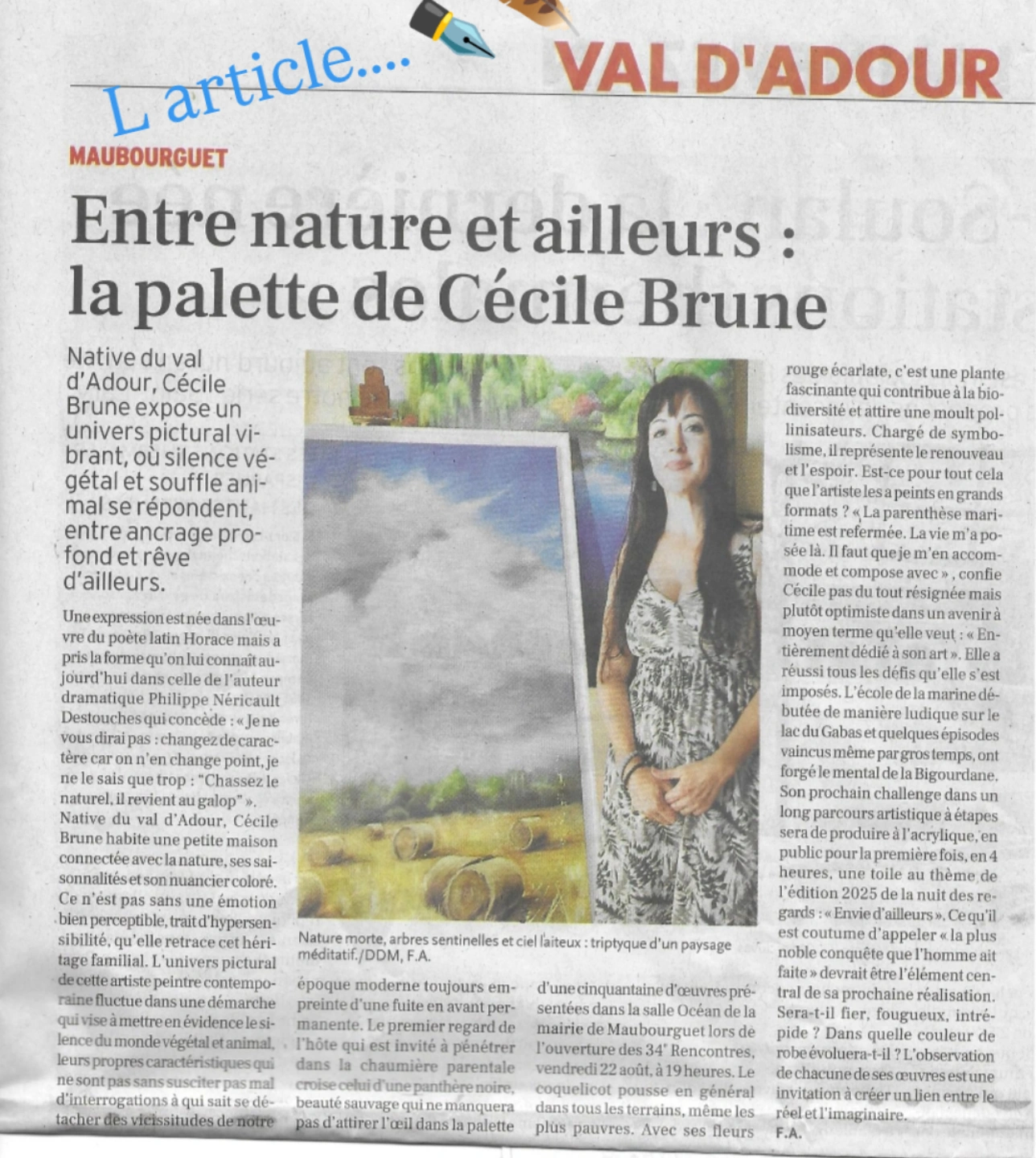 Article de presse pour les rencontres de Maubourguet. aout 2025. Un live painting, performance peinture devant un public durant 2h30, réalisation d'une oeuvre.